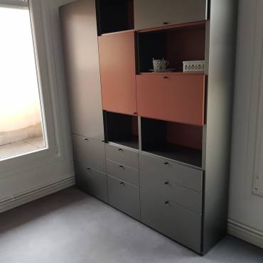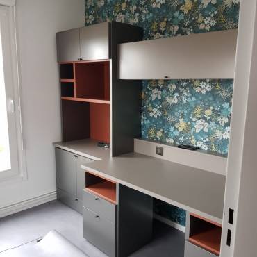 Aménagement de bureau dans un espace restreint, Novamobili, rangement et plateau de bureau sur mesure