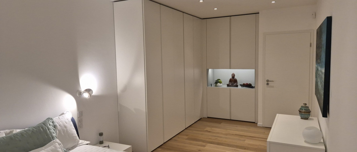 Cet appartement à Mulhouse a été entièrement repensé avec des meubles sur mesure alliant élégance et fonctionnalité. Chaque pièce, de la chambre à la cuisine, a été optimisée grâce à des aménagements personnalisés : placard intégré, bibliothèque lumineuse, armoire d’angle et cuisine haut de gamme. Un projet unique qui reflète tout le savoir-faire d’Altkirch Mobilier.